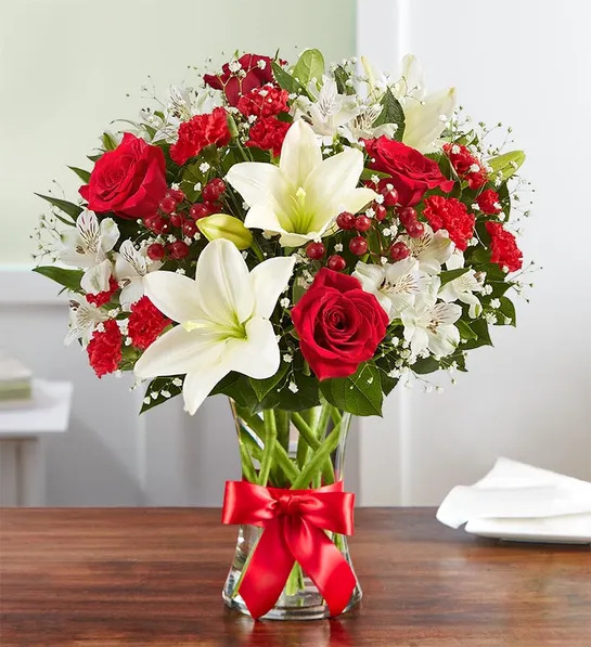 That feeling of bliss, captured in a bouquet. Inspired by the beauty of the European countryside, our best seller brings together radiant roses and lush lilies in a glass vase wrapped in red ribbon. Whatever your reason for reaching out, it’s a gift that delivers on delight.